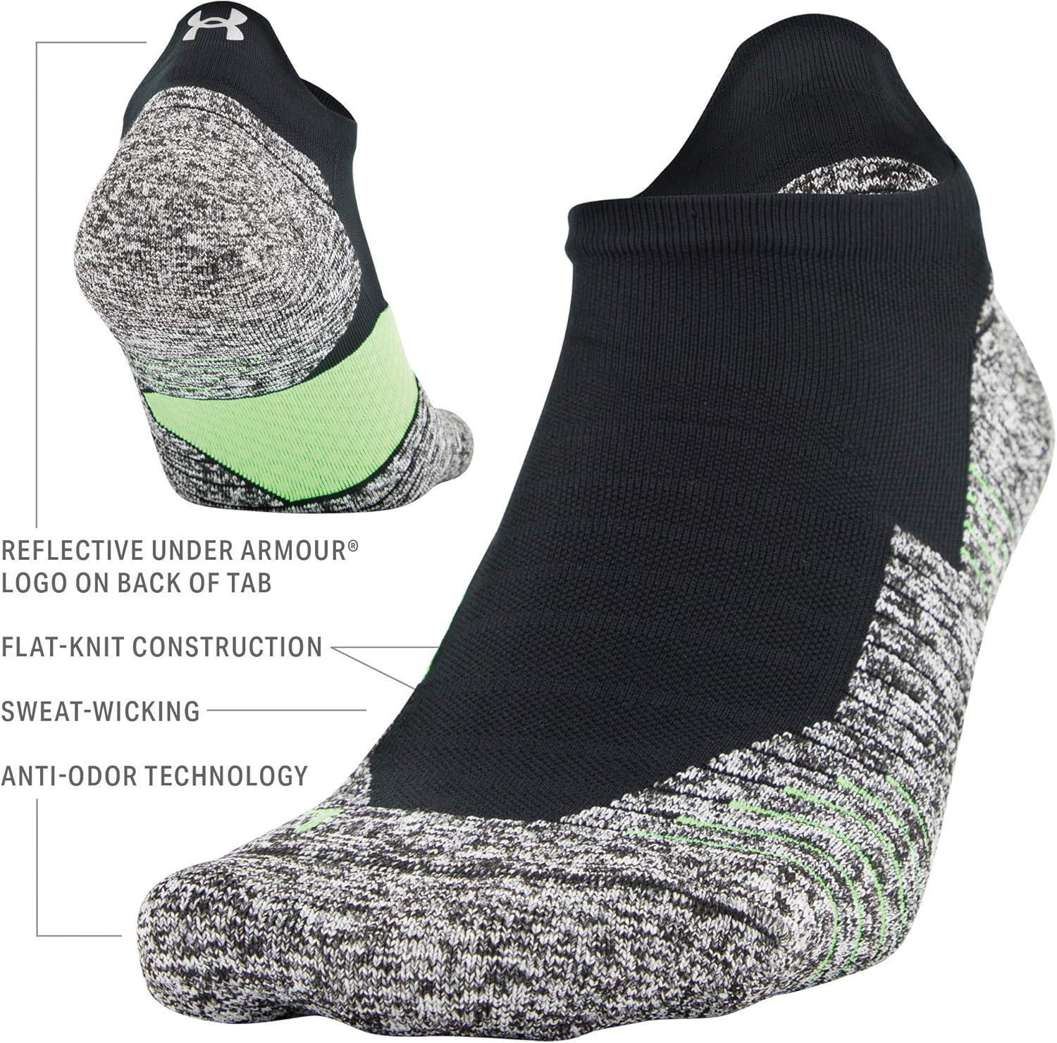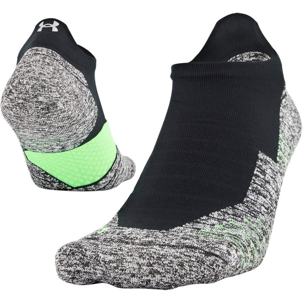 Under Armour Adult Run Cushion No Show Tab Socks, 1-Pair(Black/Green (1-pair))