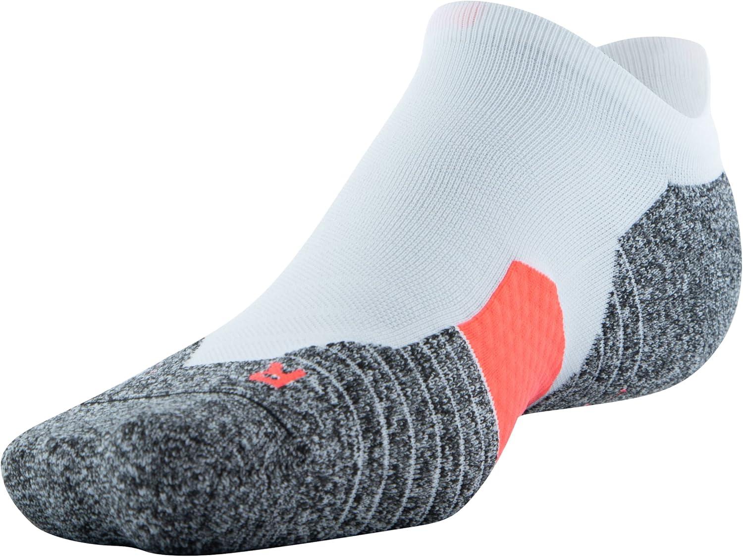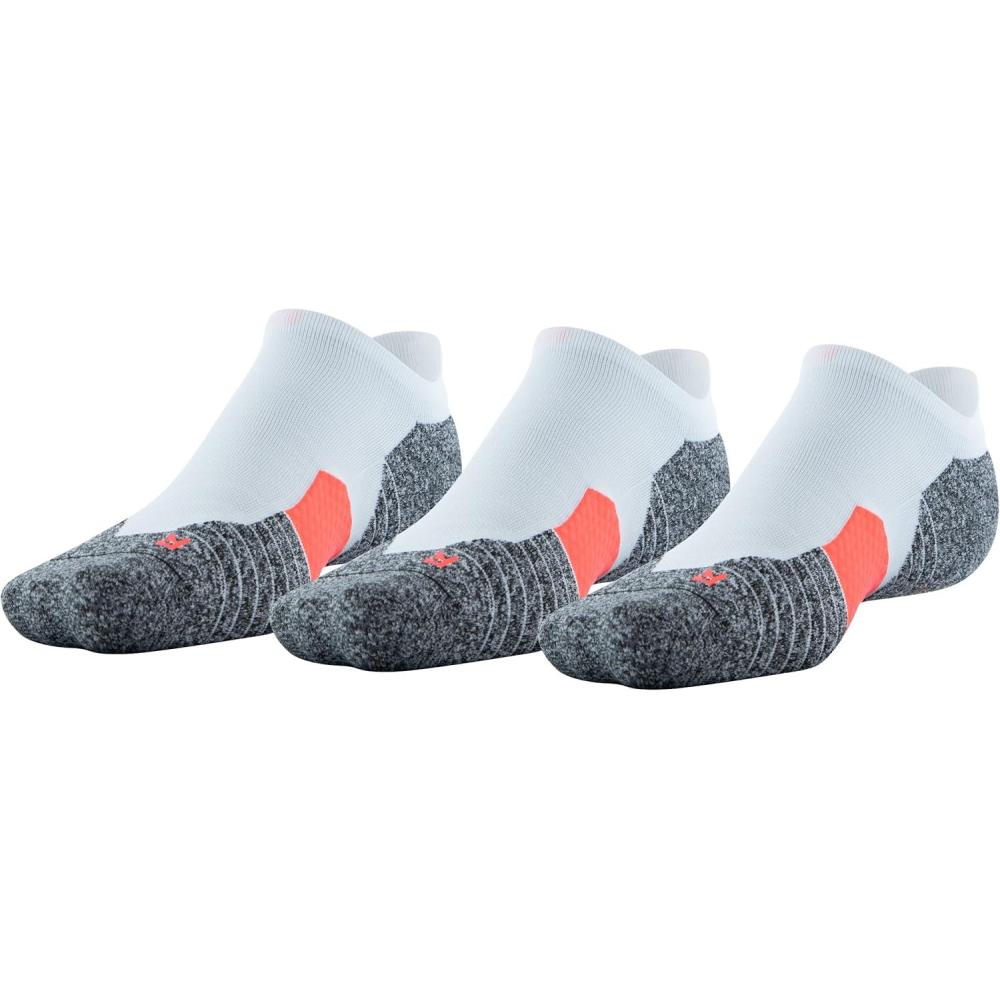 Under Armour Adult Run Cushion No Show Tab Socks, 1-Pair(White/White/Silver Reflective (3-pairs))