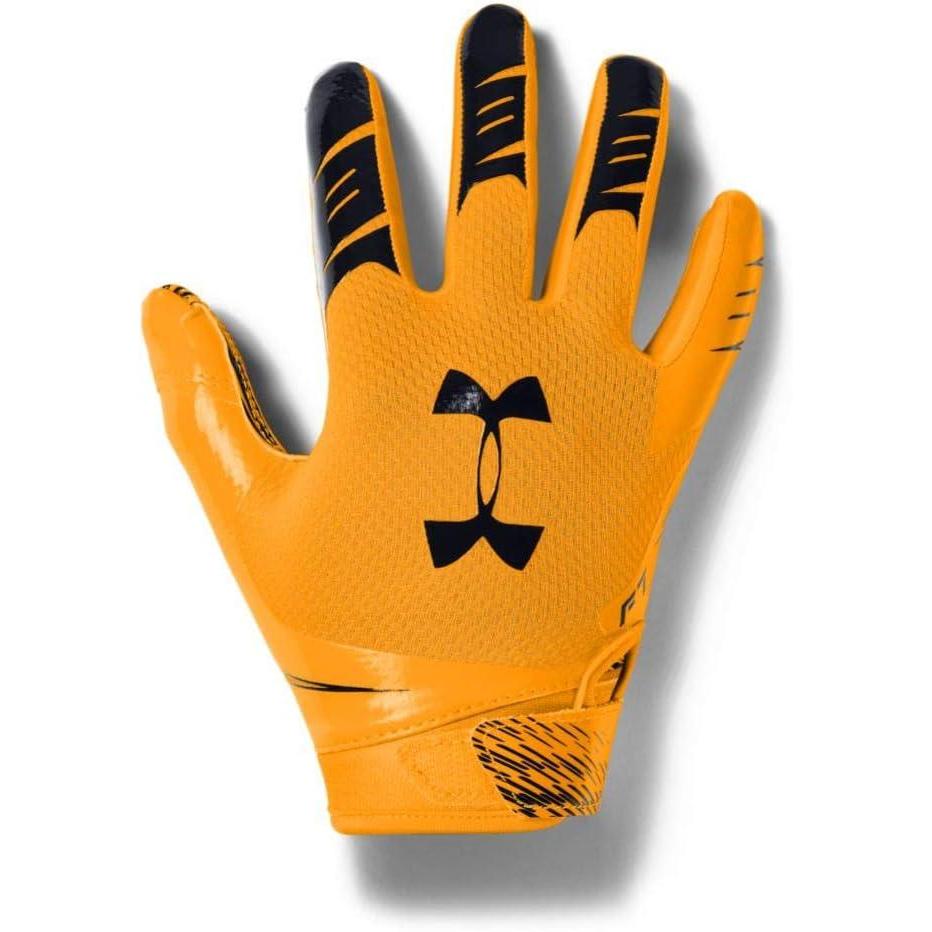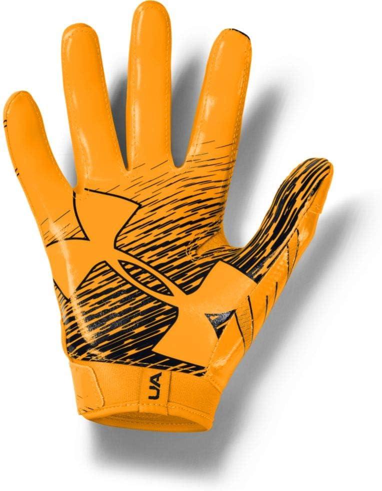 The UA F7 football gloves are light, tight, and sticky—in other words, they're built for nothing but catches. Textured TurfGear back of hand is ultra-durable & breathable. 3D print overlays for added support. UA GlueGrip makes sure your gloves start & stay sticky—providing longer lasting, more consistent tack. Adjustable closure for a custom, secure fit. Metallic details. Sold in pairs. 85% Silicone/12% Polyester/3% Elastane.
