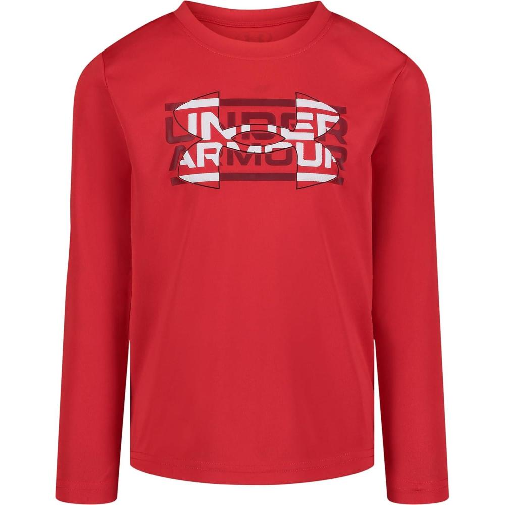 Under Armour Boys’ Long Sleeve Shirt, Crewneck, Lightweight and Breathable(Red Layered Logo)