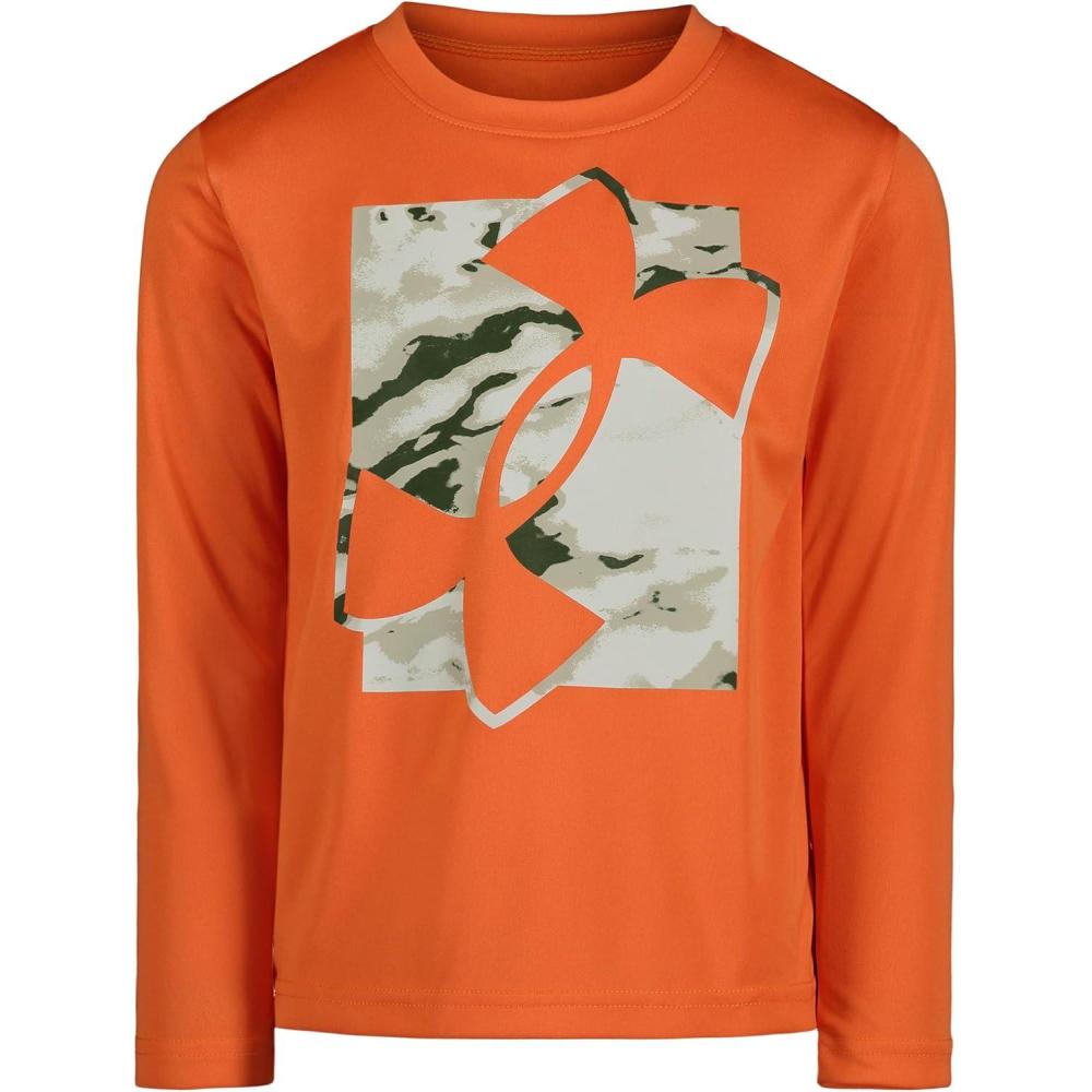 Under Armour Boys’ Long Sleeve Shirt, Crewneck, Lightweight and Breathable(Tangerine/Marble)