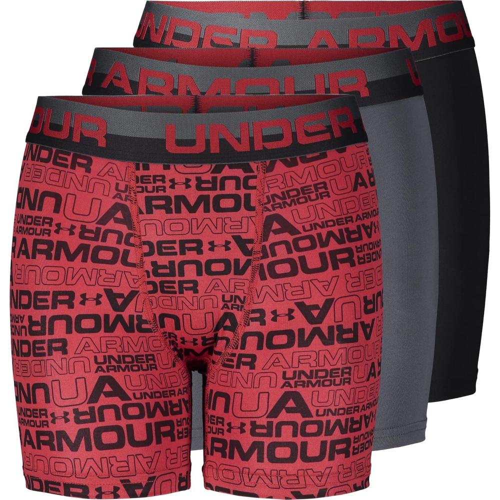 Under Armour boys Performance Boxer Briefs, Lightweight & Smooth Stretch Fit(Red/Black)