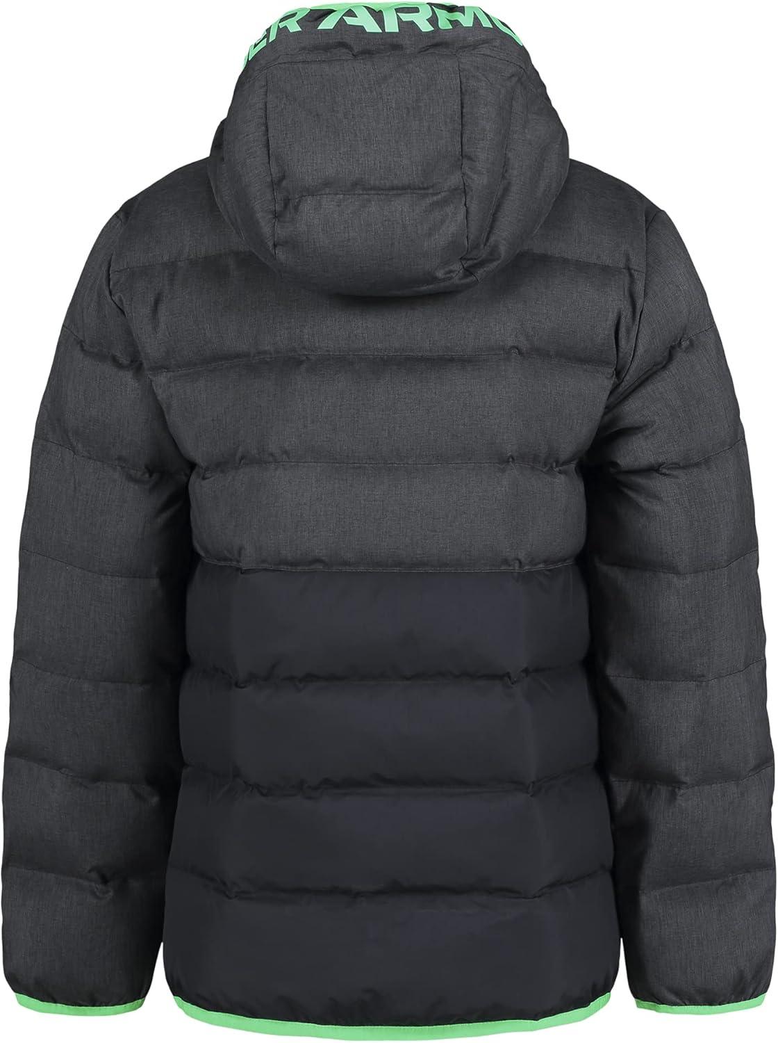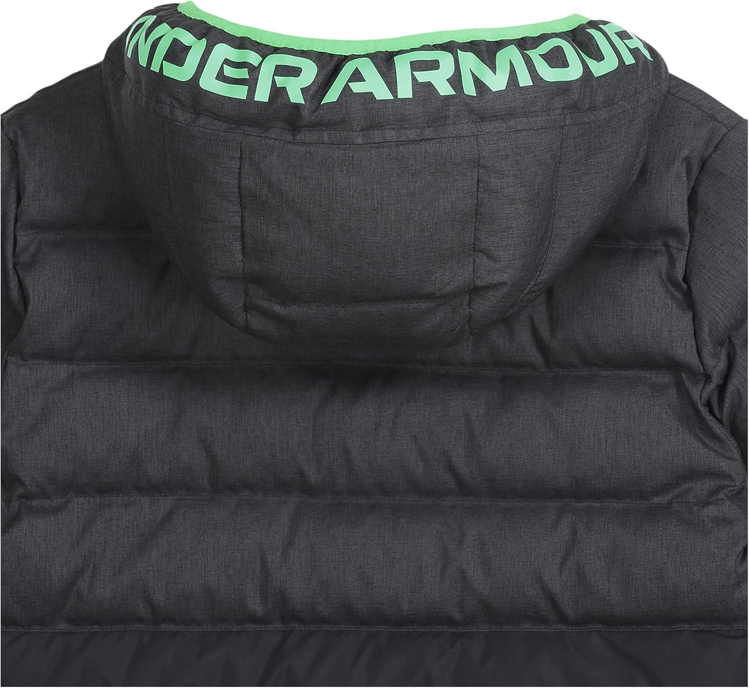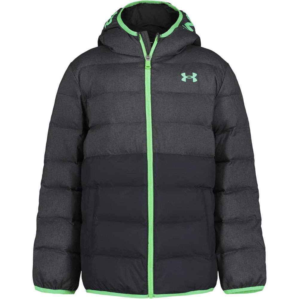 Under Armour boys Pronto Colorblock Puffer Jacket, Mid-weight, Zip Up Closure, Repels Water(Black/Green)