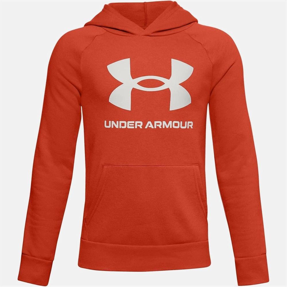 Under Armour boys Rival Fleece Hoodie(Rich Orange (830)/Onyx White)