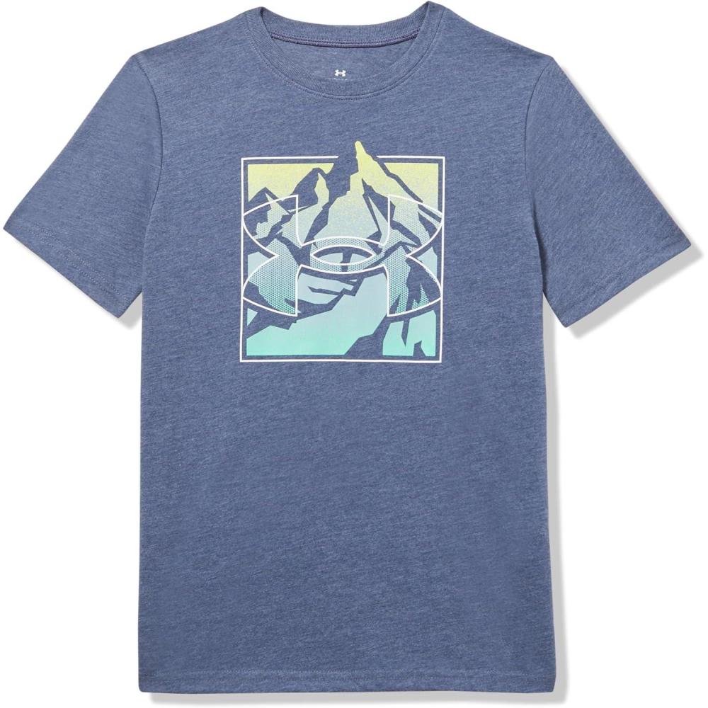 Under Armour Boys Short Sleeve Shirt, Crewneck, Lightweight and Breathable, Outdoor(Electric Blue Tacklebox)