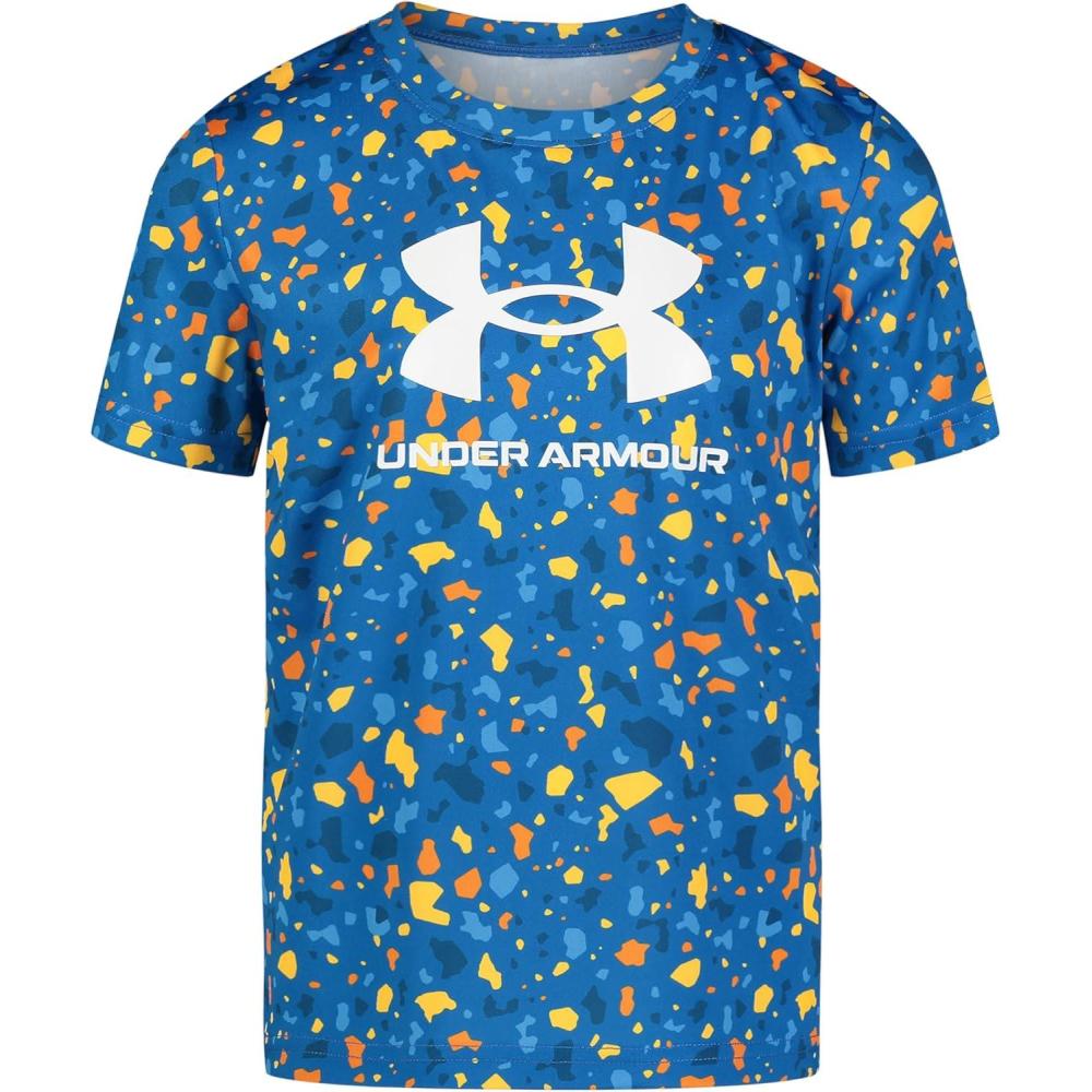 Under Armour Boys Short Sleeve Shirt, Crewneck, Lightweight and Breathable, Outdoor(Photon Blue Camo)