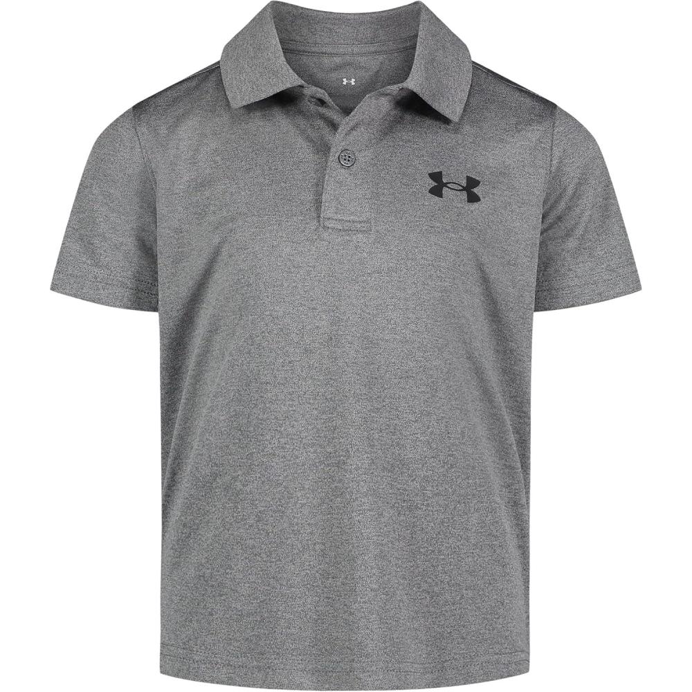 Under Armour Boys’ Short Sleeve Ua Match Polo Collared Shirt, Chest Logo, Soft & Comfortable(Pitch Gray – Twist)