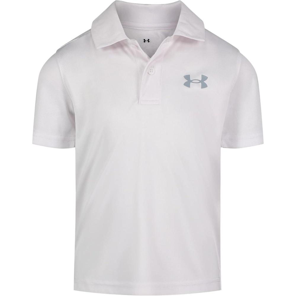 Under Armour Boys’ Short Sleeve Ua Match Polo Collared Shirt, Chest Logo, Soft & Comfortable(White – Core)