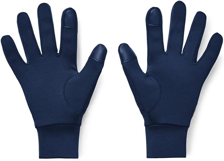 Thin, fitted liner gloves can be worn on their own or as a layer under heavier gloves. UA Storm technology repels water without sacrificing breathability. Dual-layer ColdGear® fabric with an ultra-warm, brushed interior & a smooth, fast-drying exterior. Material wicks sweat & dries really fast. Tech Touch on thumbs & index fingers so you can use touch screen devices without taking your gloves off