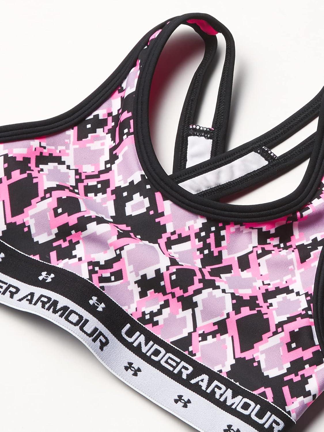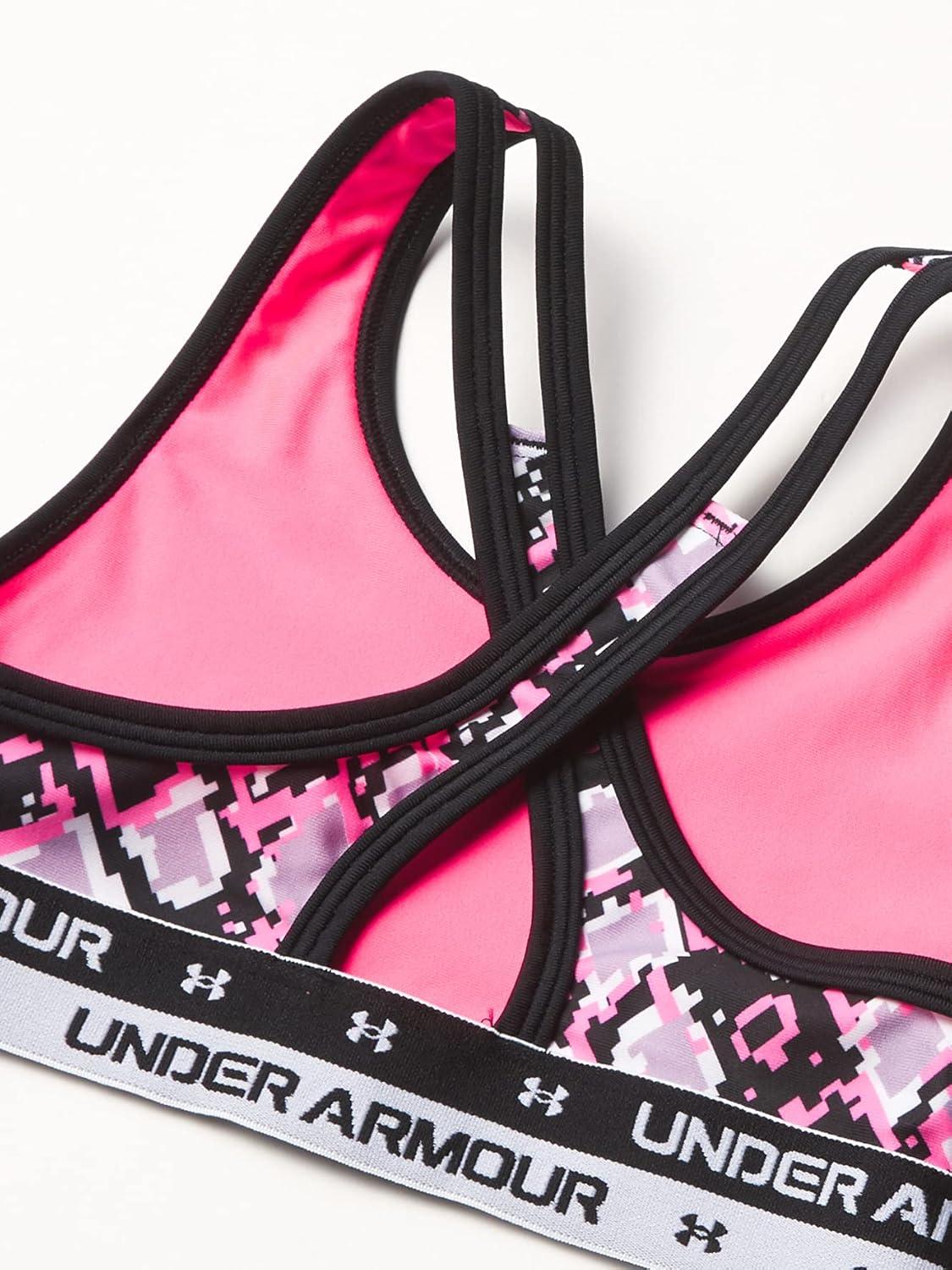 Super-smooth, double-layer HeatGear fabric delivers superior next-to-skin feel. Material wicks sweat & dries really fast & light. 4-way stretch construction moves better in every direction. Crossover straps with updated keyhole detail for easier on/off. Elastic band with mini wordmark wraps feels super-smooth & soft. Double-lined for coverage, no padding.