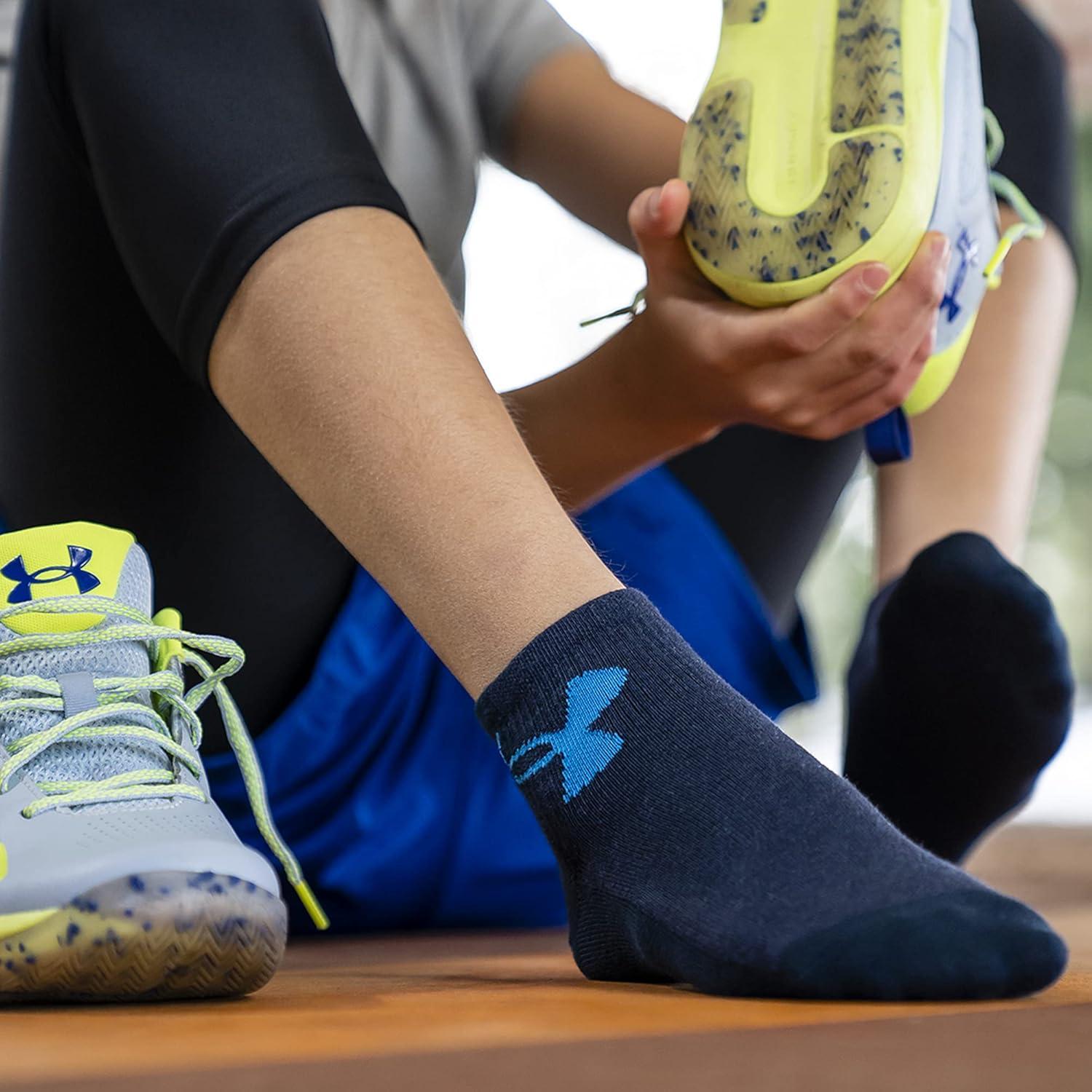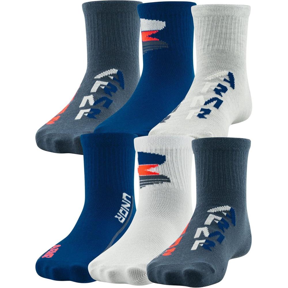 Under Armour Kids’ Essential Lite Quarter Socks, 6-Pairs(Cosmic Blue Assorted)