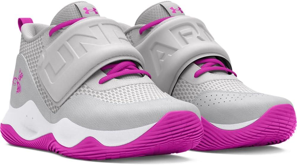 Under Armour Kids’ Pre School Zone Basketball 2 Shoe((101) Halo Gray/Distant Gray/Vivid Magenta)