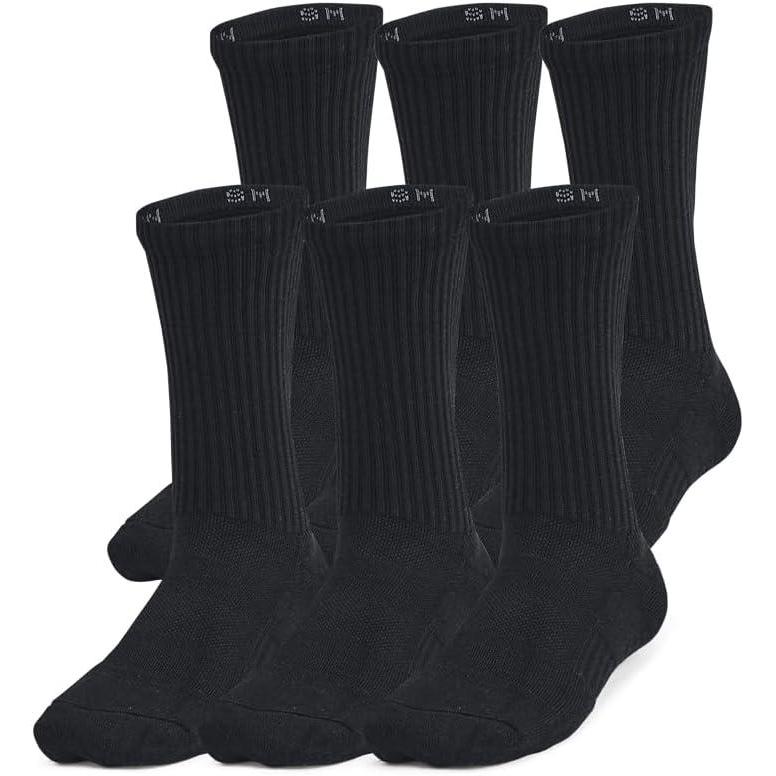 Under Armour Kids’ Youth Training Cotton Crew Socks (6 Pairs)((001) Black / Black / White)