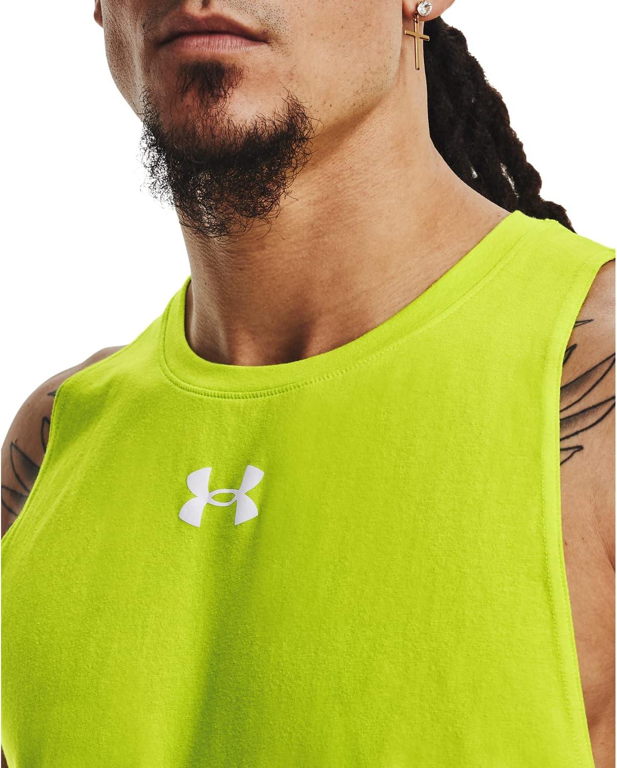 Under Armour Men’s Baseline Cotton Tank((014) Pitch Gray / / Green Screen)
