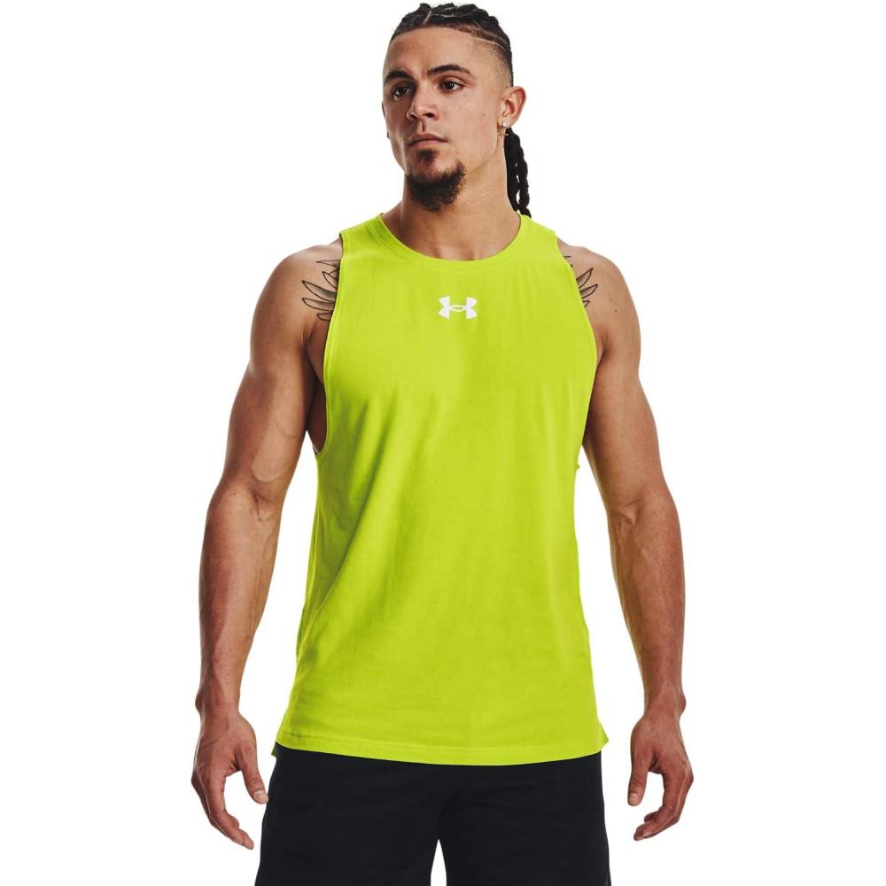 Under Armour Men’s Baseline Cotton Tank((324) Velocity / / White)