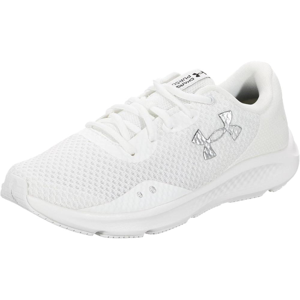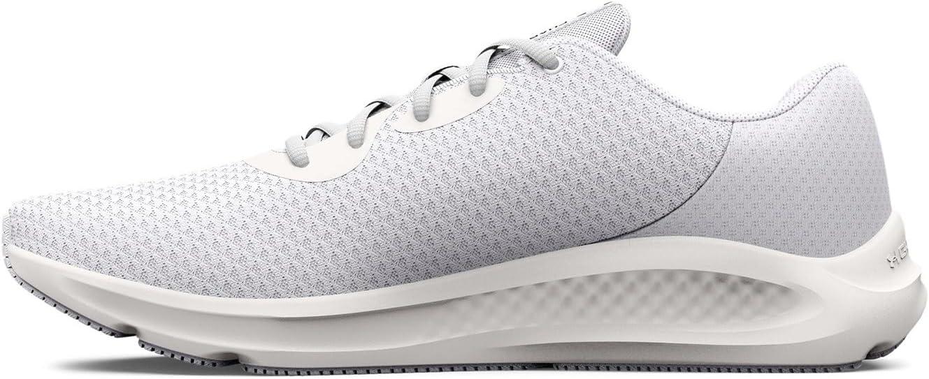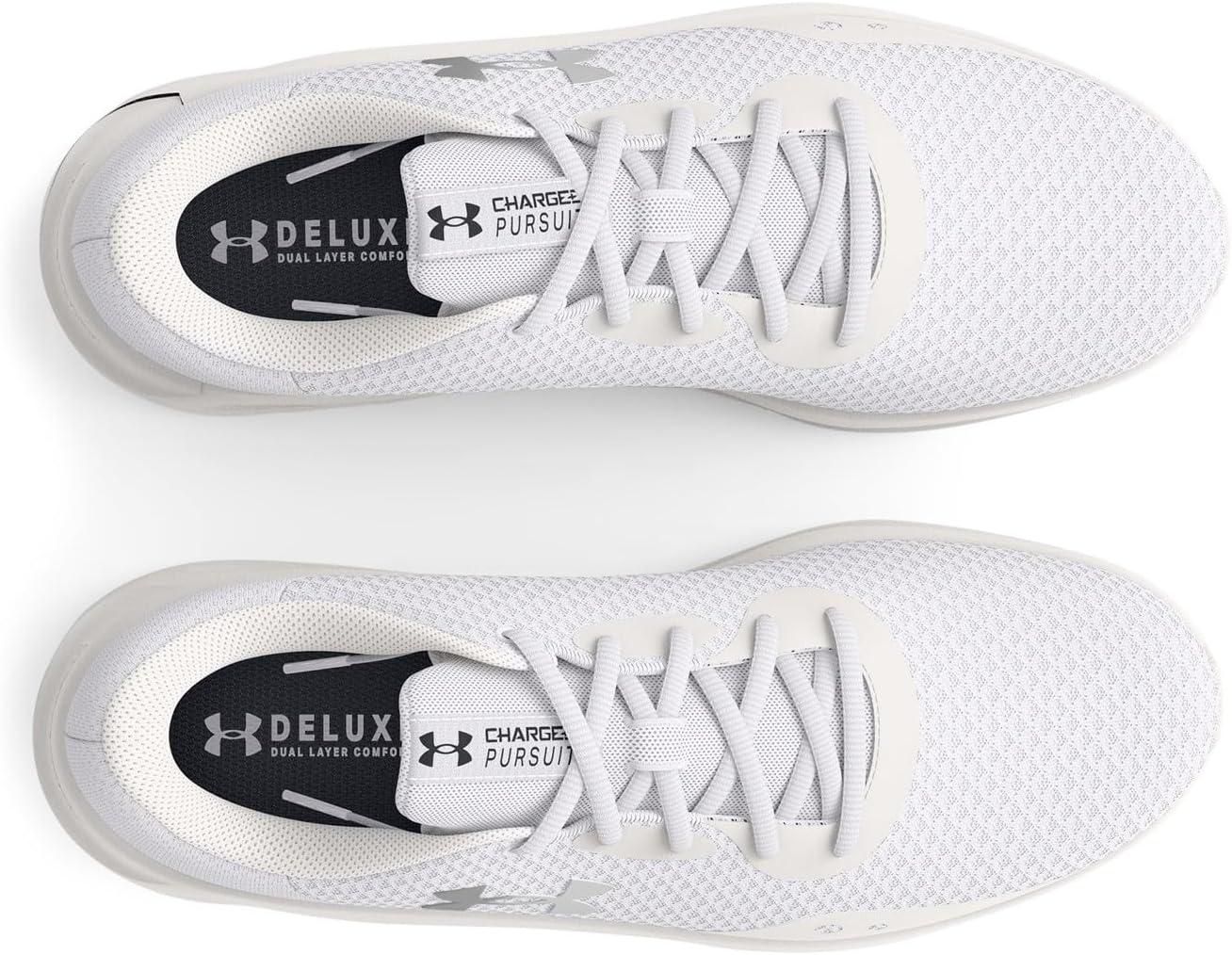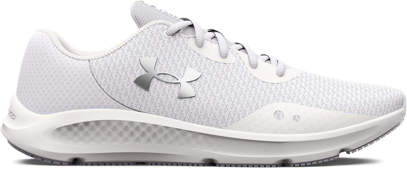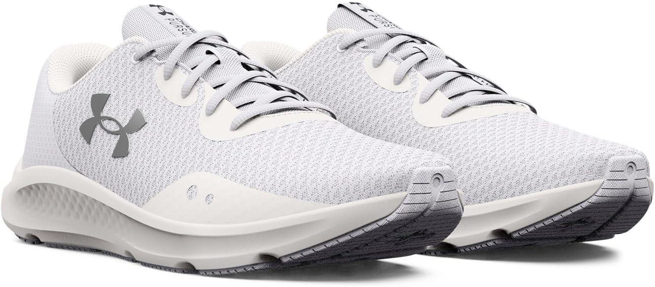 Under Armour Men’s Charged Pursuit 3 Running Shoe(White/White/Metallic Silver)