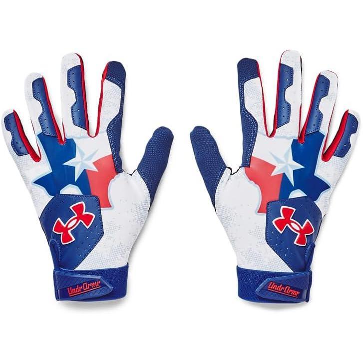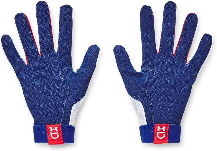 Synthetic palm provides durability & grip. Built with HeatGear® fabric to keep your hands cool, dry & light all game. Synthetic overlays add support in all the right places. Perforations built over the fingers for extra breathability. Adjustable elastic wrist cuffs provide support & a locked-in, powerful feel. Sold in pairs. 87% Nylon/13% Elastane.