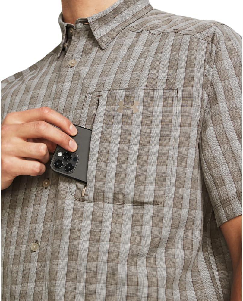 Under Armour Men’s Drift Tide 2.0 Plaid Short-Sleeve T-Shirt((203) Timberwolf Taupe / Timberwolf Taupe / Taupe Dusk)