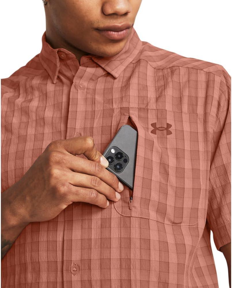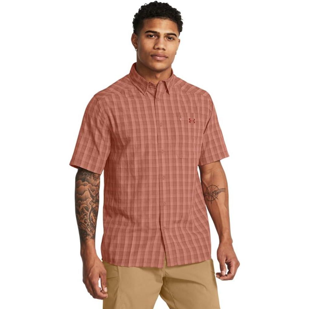 Under Armour Men’s Drift Tide 2.0 Plaid Short-Sleeve T-Shirt((696) Canyon Pink / / Earthen Orange)