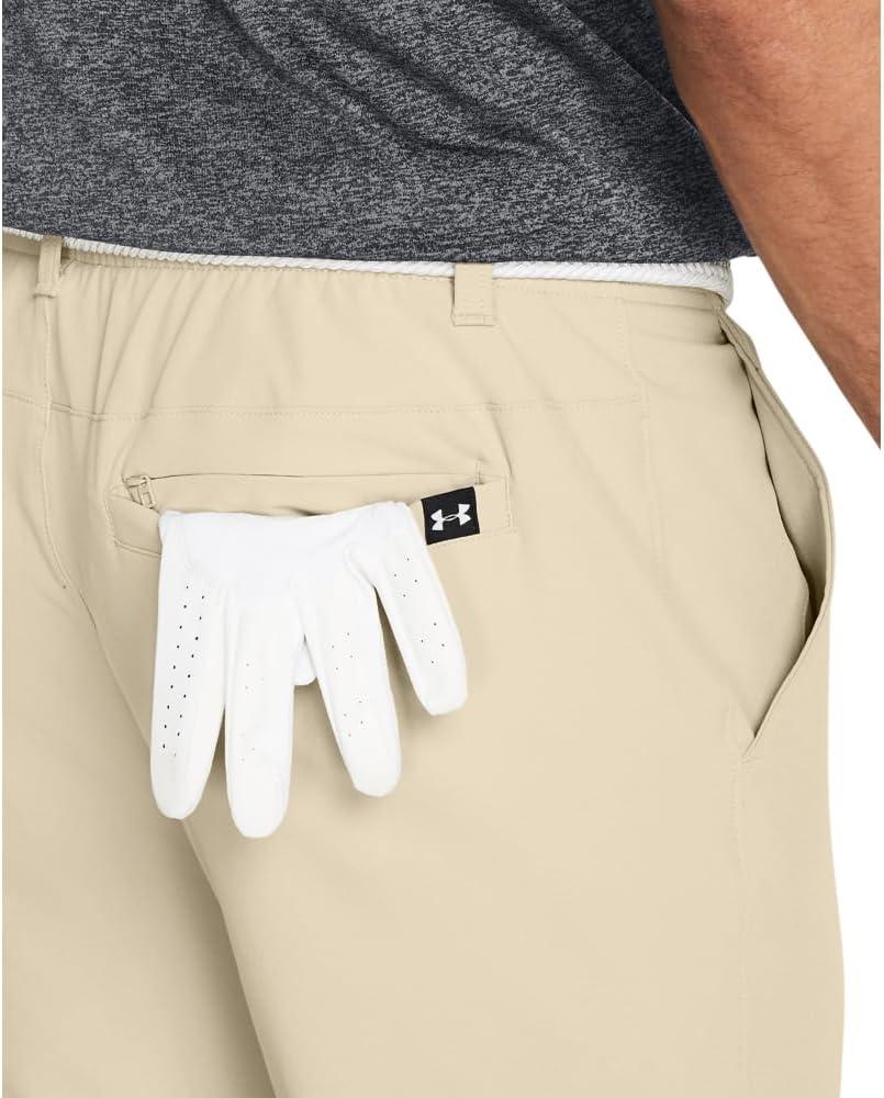 UA Drive pants and shorts are light and super stretchy, which means they move with you and your swing. They're also water-repellent so you can play through when the weather turns. These aren't your average golf pants. UA Storm technology repels water without sacrificing breathability. Light, durable & super-comfortable stretch-woven twill fabric. 4-way stretch material moves better in every direction. Stretch waistband moves with you & has internal grip to keep your shirt in place through your swing. Open hand pockets & secure back pockets. Inseam: 29.5″. Pockets: Yes. Tapered leg fit with encased elastic cuffs. 90% Polyester/10% Elastane.