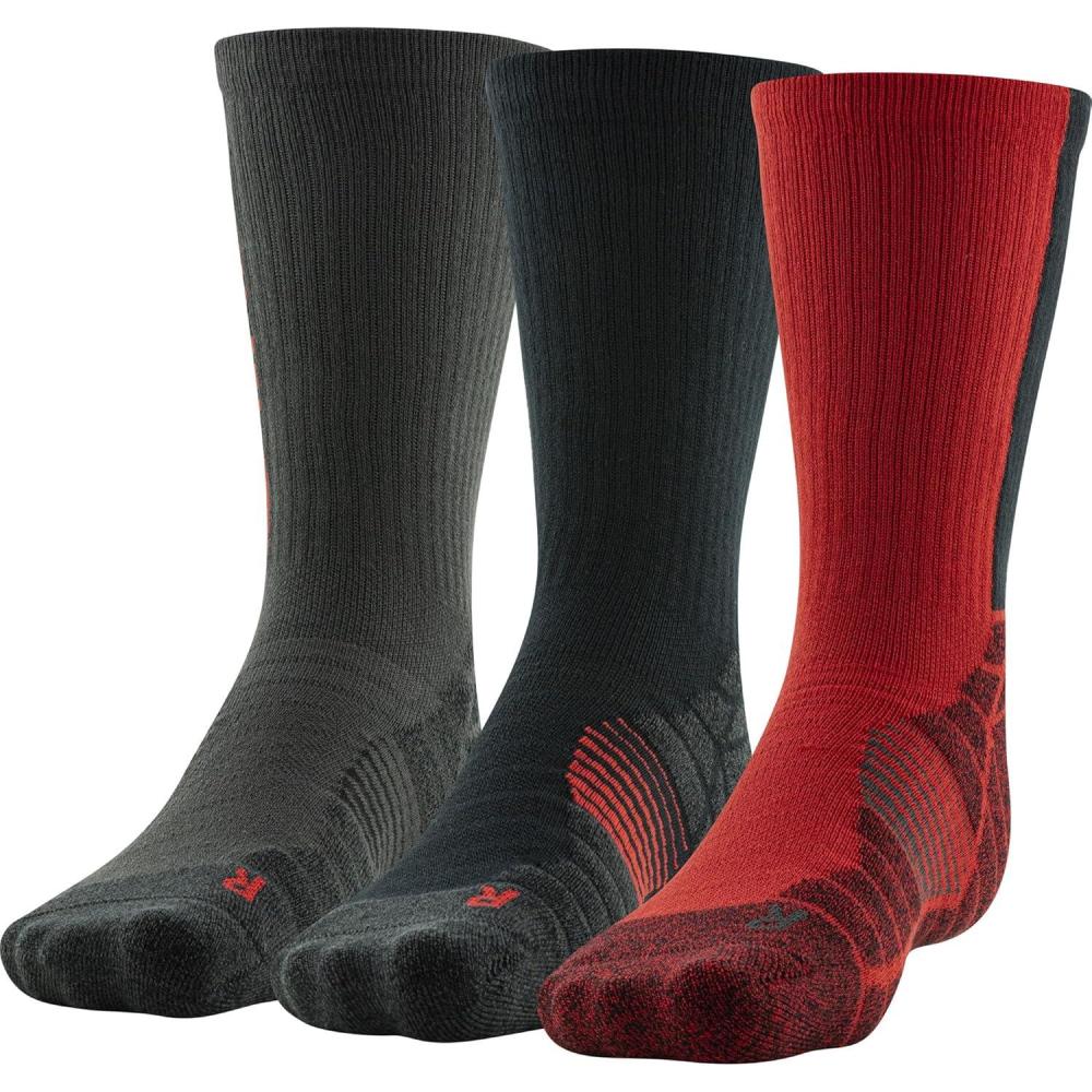 Under Armour Men’s Elevated Novelty Crew Socks, 3-Pairs(Jet Gray/Red Assorted)