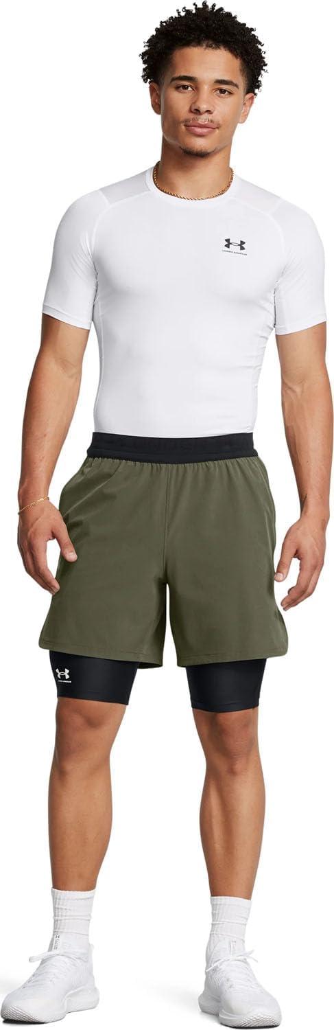 Under Armour Men’s HeatGear Long Shorts(White (100)/Black)