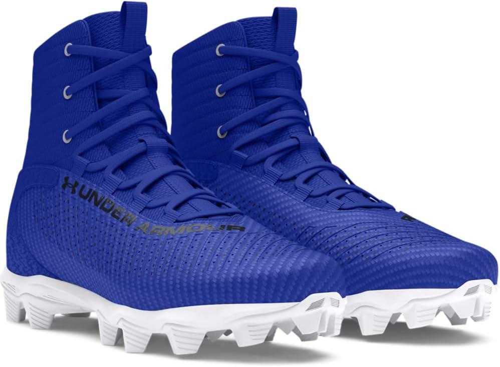 The Highlight provides powerful support to help you play with unstoppable speed. Even though it's super-high cut, it's still incredibly light and breathable, so you can stay explosive every snap. Performance synthetic upper & textile collar provide a lightweight fit, mobility & durable support. Open-holed mesh tongue for enhanced ventilation. Die-cut EVA sockliner for excellent comfort & durability under the foot. Rubber molded cleats provide aggressive traction on all surfaces with a lightweight, comfortable feel. Weight:.