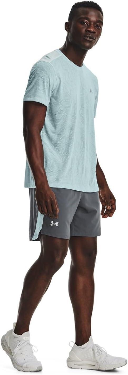 Under Armour Men’s Launch Stretch Woven 2-in-1 Shorts((015) Pitch Gray / Fuse Teal / Reflective)
