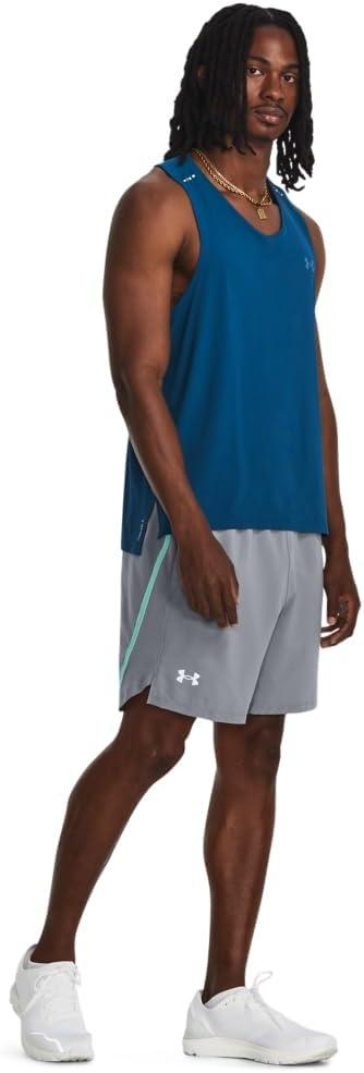 Under Armour Men’s Launch Stretch Woven 2-in-1 Shorts((035) Steel / Neo Turquoise / Reflective)