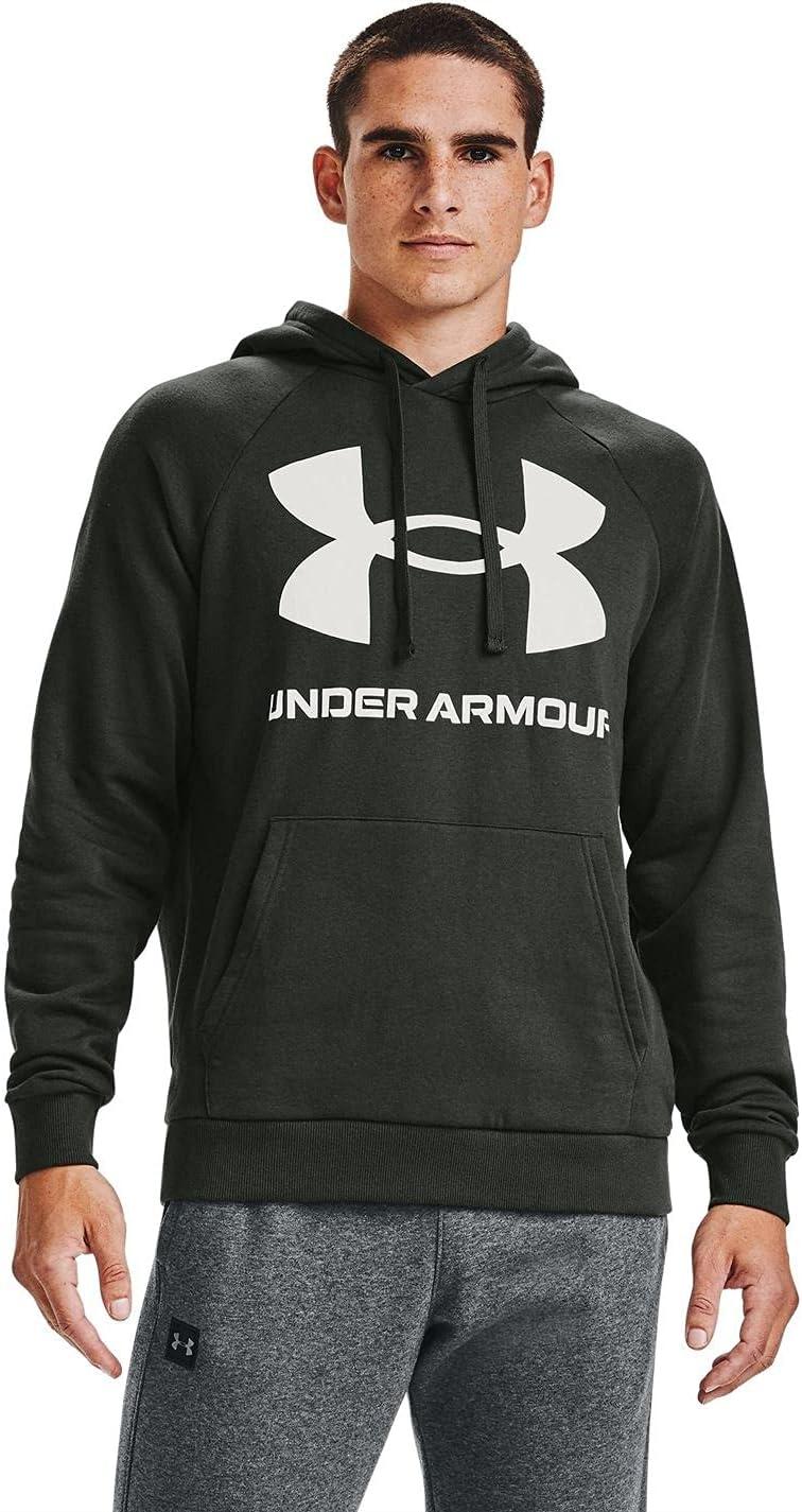 Under Armour Men’s Rival Fleece Big Logo Hoodie(Baroque Green (310)/Onyx White)