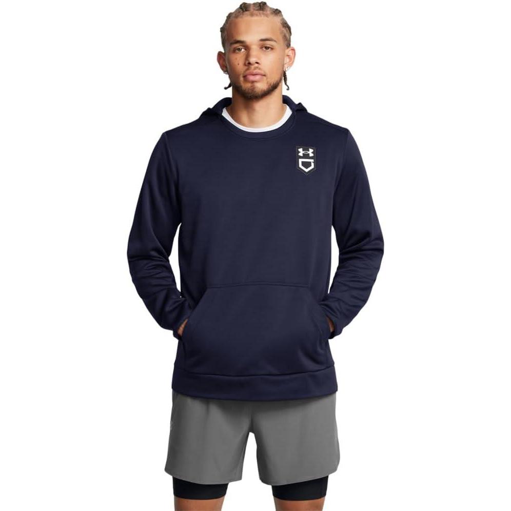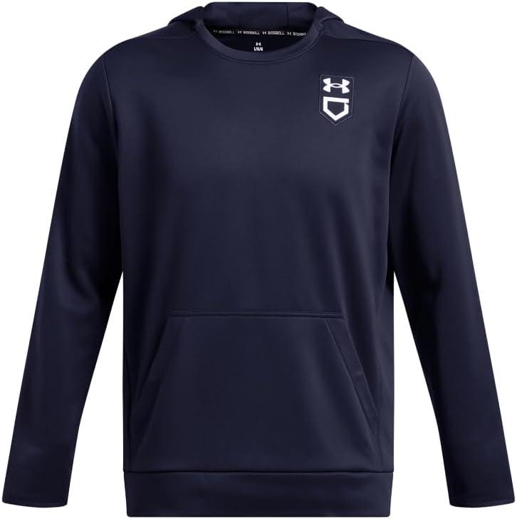 Armour Fleece® is our original performance replacement for old-school fleece. It's light, incredibly warm, and has just the right amount of stretch. Armour Fleece® is light, breathable & stretchy for warmth that still lets you move. Soft inner layer traps heat to keep you warm & comfortable. Zero-distraction hood design with no drawstring gives you full peripheral vision. Room in shoulders & chest for comfort while wearing over a jersey. Tighter forearms stay put while batting & playing catch & shortened cuffs for comfort with batting gloves. Front kangaroo pocket with snap closure. . . . . 100% Polyester.