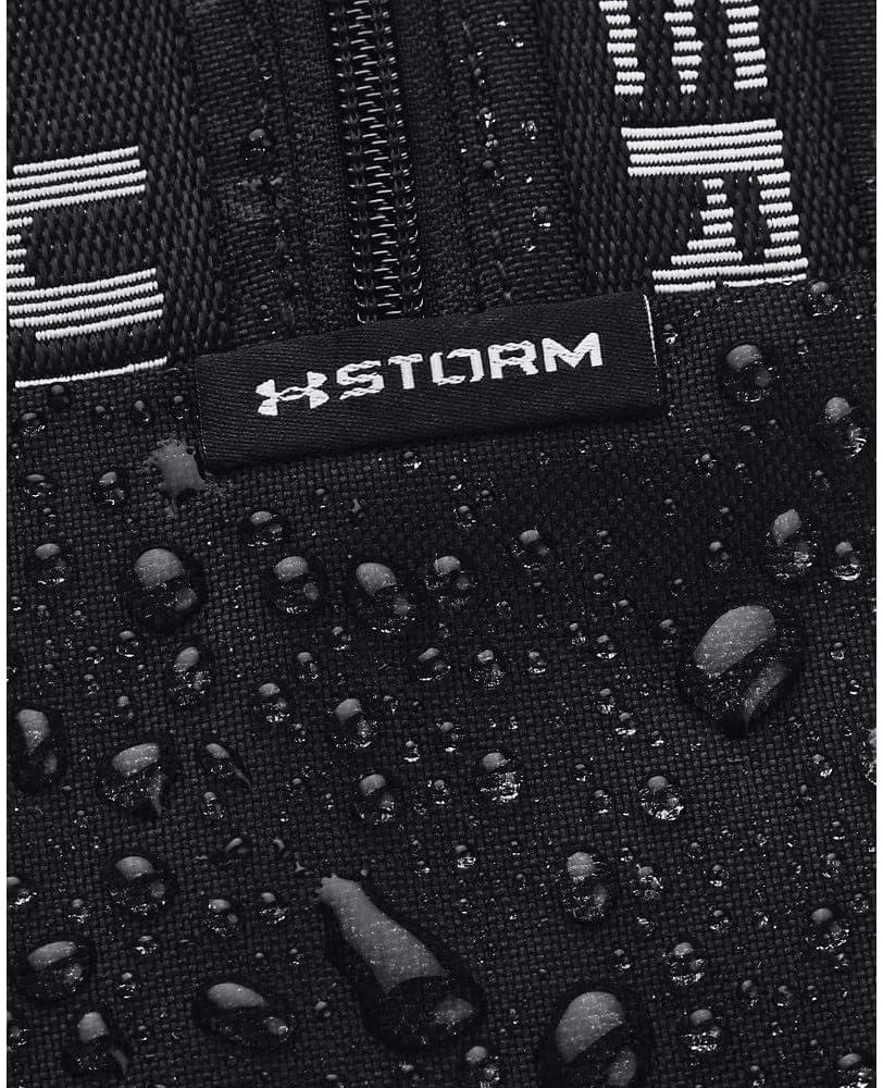 Water-resistant UA Storm technology keeps your stuff dry. Soft-lined laptop sleeve holds up to 15″” MacBook Pro® or similarly sized laptop. 1 zip-shut main compartment & large, zippered valuables pocket at the front. Center front drop-in water bottle pocket. Jacquard wordmark webbing across top. Top grab handle. Dimensions When Full: 11.8″”W x 17.7″”H x 5.1″”L. Volume: 25.5 L. 100% Polyester.