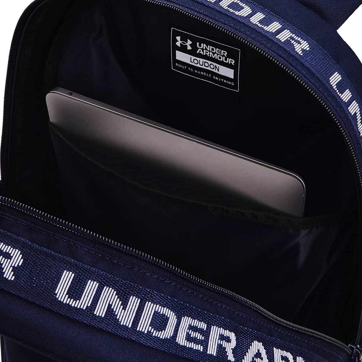 Under Armour Unisex-Adult Loudon Backpack, (002) Black/Black/Reflective, One Size Fits Most(Midnight Navy (410)/White)