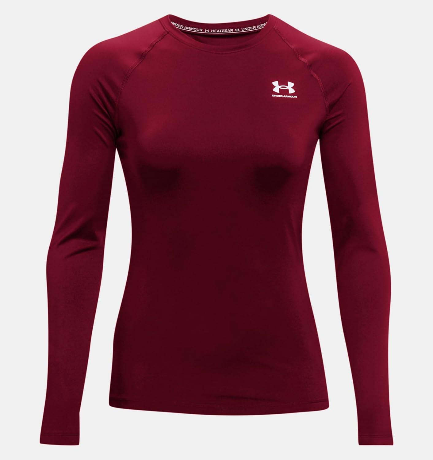 Under Armour Women’s HeatGear Compression Long-Sleeve T-Shirt(Cardinal (625)/White)