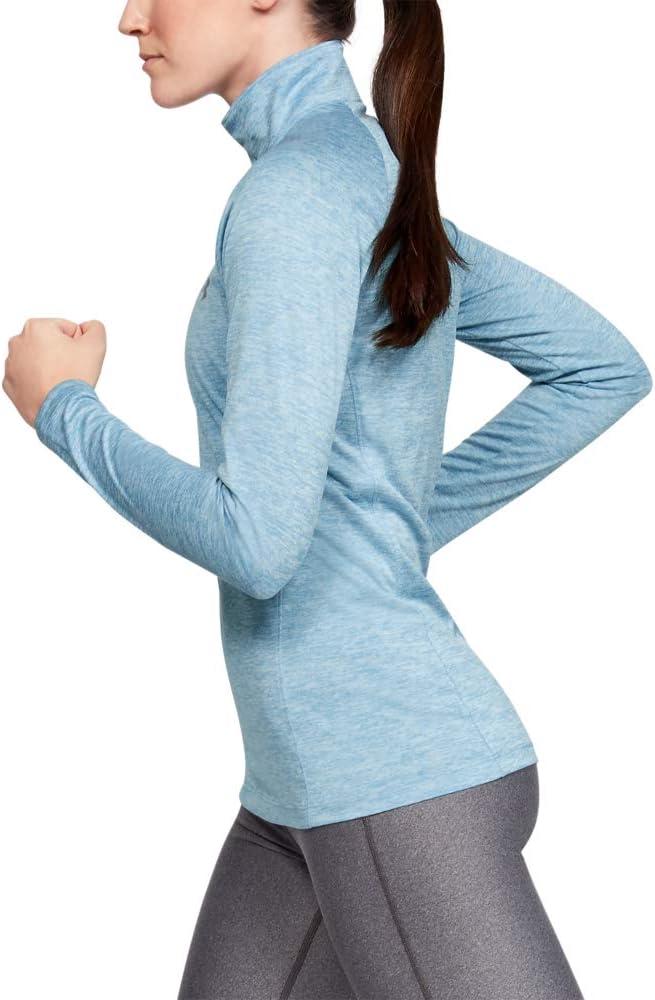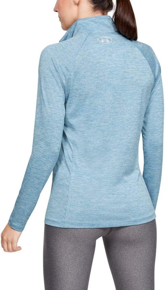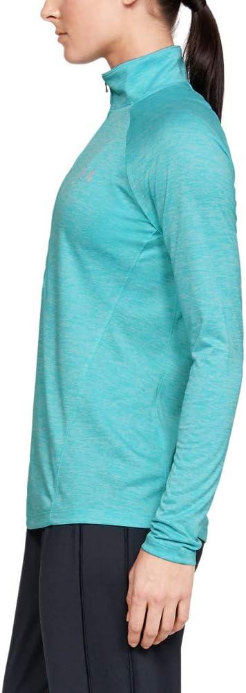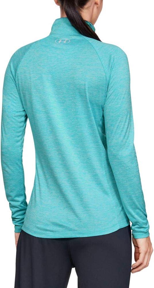 You can make all the right moves in this Under Armour Tech 1/2 Zip Twist Top! Fitted fit is snug, but not tight, for next-to-the-skin support without the squeeze of compression. UA Tech fabric: Lightweight poly in a supersoft knit. Moisture Transport System provides quick-dry, moisture-wicking performance that moves perspiration away from the skin to dry quickly on the surface. Stand collar with a half-zip closure. Long raglan sleeves provide a wider range of arm motion. Pullover design. Extended straight hemline. Reflective UA logo at left chest. 100% polyester. Machine wash, tumble dry. Imported.