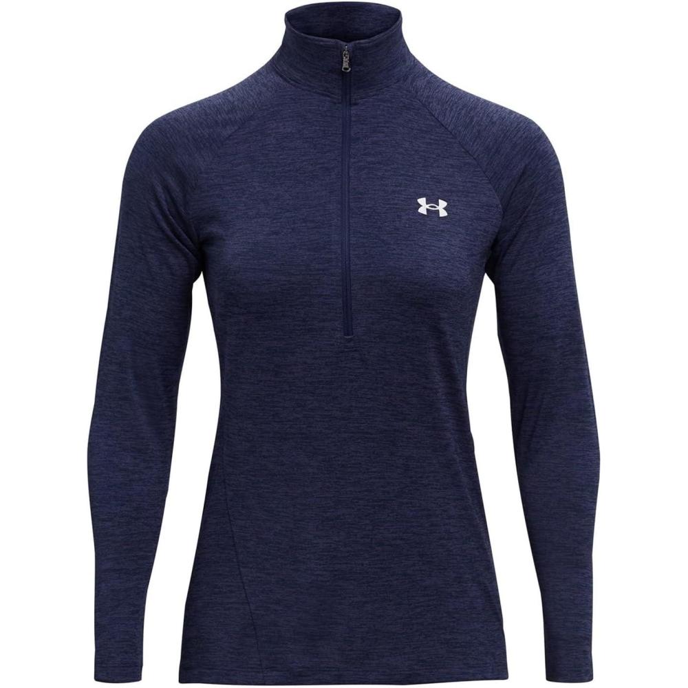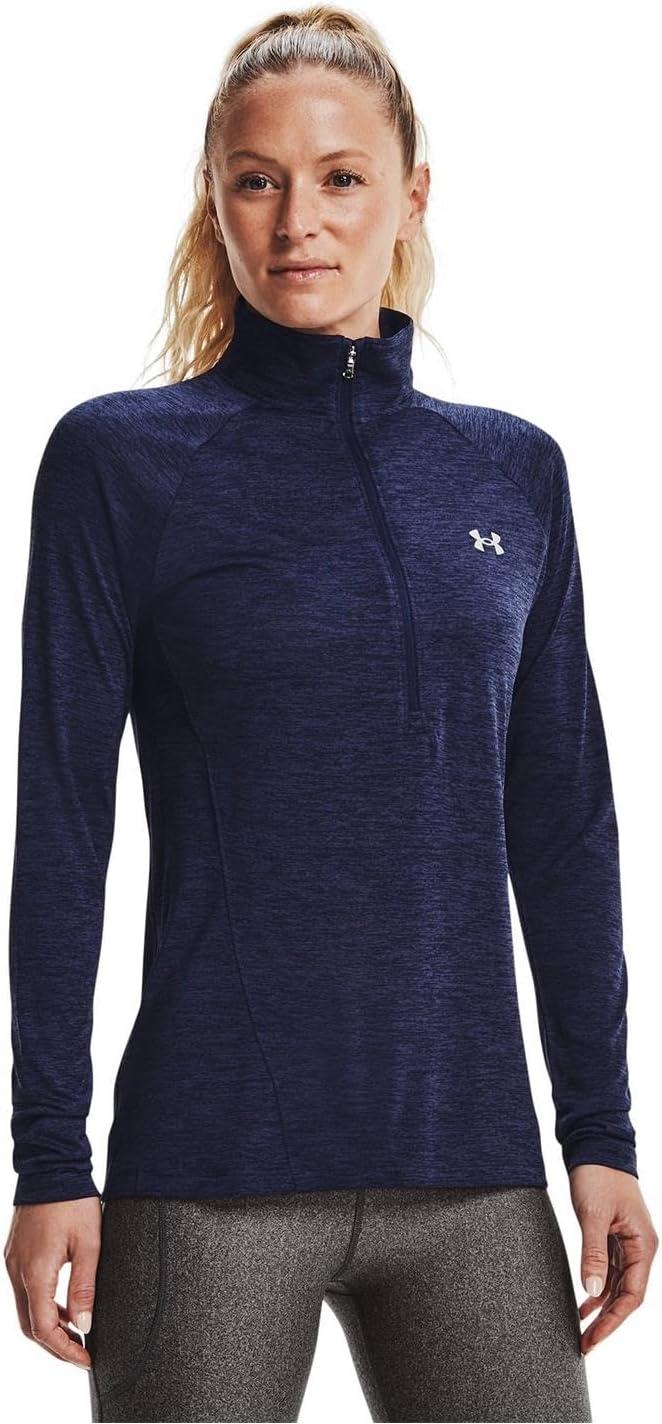 Under Armour Women’s Tech Twist ½ Zip Long-Sleeve Pullover(Midnight Navy (410)/Metallic Silver)